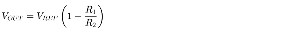 Here, V (REF) is typically 0.5 V. Choosing R2 = 10 kΩ and R1 = 26 kΩ yields V(OUT) ≈ 1.8 V. Always consult the datasheet for recommended resistor values and ensure the divider current is sufficient relative to the device’s reference and feedback input current.