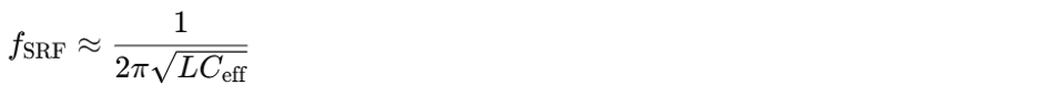 MLCCs behave as RLC networks. ESR and ESL depend more on package geometry than dielectric type. Small packages (0402) offer low ESR but higher ESL; larger formats (1210) exhibit the opposite. The series resonant frequency (SRF) is approximated by: