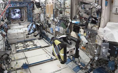 The Astrobee free-flying robots, developed in and managed by the NASA Ames Intelligent Systems Division, were setup for the second session to test an autonomous rendezvous algorithm and assist the ground team in monitoring Astrobee performance of autonomous robotic rendezvous with a tumbling target.